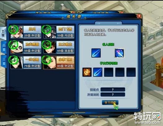 获得子女后,还可以让子女学习名人技能、龙凤典技能。当侠友与名人的好感度达到至交,子女便可以通过学艺来学习名人技能,每个名人技能都有相应的技能点消耗,而每名子女只拥有20点技能点潜能,所以侠友要慎重对待,至于龙凤典的技能,子女也可以通过习武来学习,每名子女最多可以学习4本龙凤典技能,如果是精致龙凤典技能可以指定覆盖,而普通的龙凤典则随机替换,精致龙凤典可以通过5本同样的龙凤典来进行合成,不得不说这个系统实在太良心了,大大减低了侠友们的打书成本。
