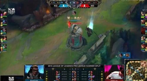 作为今日的首场对决,King在前期打出了节奏利用卡牌拿到不小优势,但是M3通过对小龙的控制并没有让自己劣势扩大,中期团战双方打的难解难分,但是M3发挥更加出色率先拿下一分。在BP时King比较针对M3辅助将牛头、泰坦Ban掉,在将司马老贼的皮城Ban掉。M3则是选择将版本比较强势的复仇之矛、艾克、流浪Ban掉。在Pick上King选择一套机动性比较高的阵容,上单吸血鬼、打野雷克赛、中单卡牌、ADC轮子妈和辅助扇子妈。而M3选出一套团战非常强势的阵容,兰博、酒桶、维克托、飞机与安妮双人路。进入比赛后维克托在中路右侧草丛被卡牌、和扇子妈消耗送掉一血,双人路马上召唤队友来到下路击杀轮子妈扳回一个人头。卡牌到6级后飞到上路拿到两个人头回家补给回到线上与维克托的输出不相上下,King前期利用卡牌大招成功带起三路优势。经过一段平稳期发育后,King开始实施多人抱团抓单套路,维克托在闪现一次后就再也能全身而退了,多次杯King多人抓死。双方在小龙buff的争夺上尤为激烈,在第四条小龙buff刷新后,双方再次爆发团战,M3打出一波1换3拿到第四条小龙,M3利用这波团战将经济反超又拿大龙buff,King面对三条小龙buff的M3战队非常头疼,士气上也很低沉。在随后的团战中M3发挥出完美的配合能力团灭King战队,直接一波推掉King基地拿下首局。恭喜M3先手拿下一分。