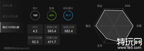 他的猴子拥有72%的胜率和6.5的KDA,558的GPM,590的XPM。他的电猫,女王和老鹿也是招牌。