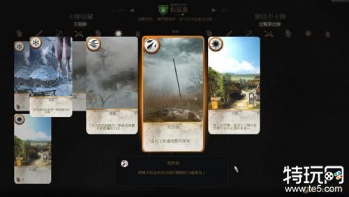 单位卡很好理解,就是怪兽卡,左上角的数字代表攻击力,即每局结束时清算的力量点数。单位卡分为近战、远程和攻城3类,相同类型的单位卡会在桌面上被放在一排。天气卡会影响一排的全部单位,如大雾会影响全部的远程单位。