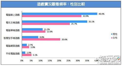 至于观看实况的游戏类型,依序为“PC在线游戏(39.4%)、主机游戏玩家(34%)、PC单机游戏(11.3%)、智能手机游戏(10.2%)”,而PC网页及平板电脑游戏皆不及3%。