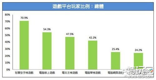 资策会产业情报研究所(MIC)公布“2015台湾游戏市场春季大调查”,调查显示“智能手机游戏(70.9%)”为最多台湾玩家游戏的平台,高于“PC在线游戏(54.3%)、主机游戏(47.5%)、PC单机游戏(42.2%)”,PC网页游戏与平板电脑游戏皆不超过30%。