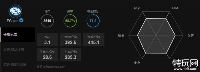 2013年的PPD并没有什么显著的成绩,知道2014年加盟EG后,他的辉煌在这里续写,先后帮EG获得DAC、TS1以及SL10几项大赛冠军。作为辅助他更偏向于有保人能力的英雄如大树、VS。在EG里他不仅仅是一名辅助,还是队长,他对队伍的作用不必多说。