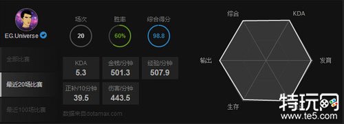 他的个人数据参考*不高,因为他什么英雄都玩,而且游戏风格和其他3号位差别太大。但是有些板上钉钉的数据还是能证明他的优秀,比如:他的蜘蛛在d2cl上有724的gpm,他的卡尔有着61.1%的胜率,他的大牛有着67%的击杀参与度。