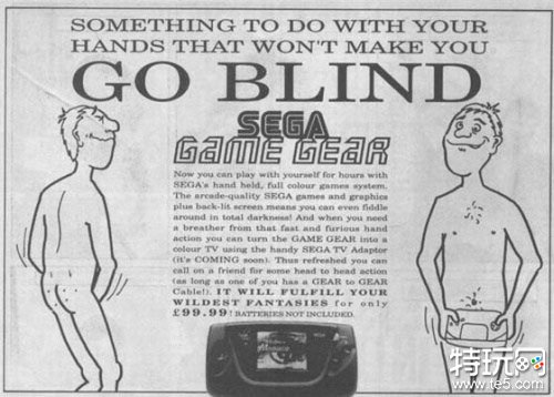 据科学研究显示,撸管过多可能会导致视力模糊,Game Gear则不会。——Game Gear广告