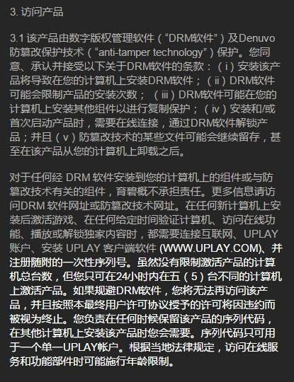 《孤岛惊魂:原始杀戮》终用户授权协议(EULA)很清楚地写着:“该产品受数字版权管理软件(DIGITAL RIGHTS MANAGEMENT SOFTWARE,DRM)和Denuvo反破解技术的保护。”此外根据EULA描述,即使游戏被卸载了,但是Denuvo加密技术的一些文件仍然会在玩家的PC上保留。