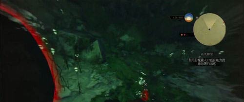 2、到达提示的潜水区域后,下水利用狩魔猎人感官寻找红色标记的道具,反复几次。