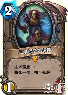 很多玩家认为血法师的身材太差了,2费、1/1的身材,虽然有法伤+1和亡语抽牌的特效,但是很多新手玩家都不喜欢用她,光这样看有时候觉得狗头人地卜师都比她好,确实是这样!狗头人地卜师有着2/2身材起码还能在场上站一下脚。哪为啥会推荐她第二名呢?