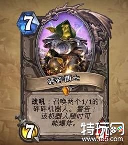喷喷博士费7/7的身材属于中等。但是他附带了两只炸弹,这炸弹就厉害了有几率可以炸出4血的伤害。回想现在天梯版本有多少随从顶得主一个炸弹在外加自身攻击一点。