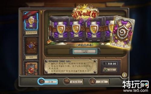 “冠军的试炼”将于八月登陆PC、Windows、iOS、Android平板和智能手机等平台,届时可在游戏内的牌店通过金币或战网点数购买到“冠军的试炼”卡包(与经典卡包、机械卡包相同的价格)。此外,通过游戏的竞技模式也可赢得新版本的卡包。下周起至“冠军的试炼”正式发布前,玩家可以优惠价格328元人民币一次性预购50个“冠军的试炼”卡包,为全新的战斗做好准备,同时还能获得一张专属的主题卡背图案(预购的卡包将在“冠军的试炼”正式发布后解锁)。