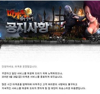 MORPG《魔界村OL》韩服日前宣布,将于8月28日停止运营。以下为《魔界村OL》韩服停运公告: