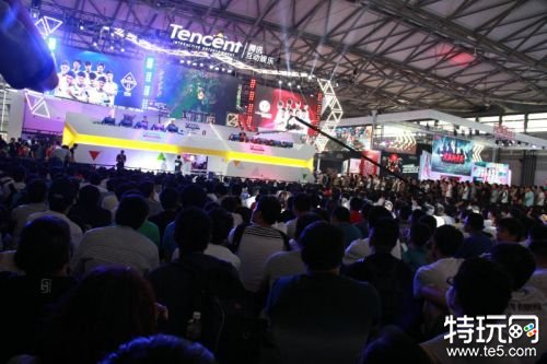 在腾讯展台,OMG战队和IG战队为众多观众带来了精彩的比赛,令很多玩家挪不开步,直接席地而坐看了起来。