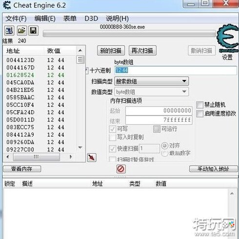 选择进程,然后选择byte数组,搜索12 44。