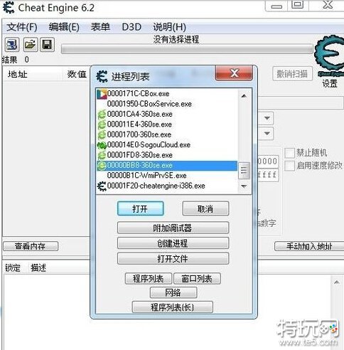 打开ce,我用的是6.2,打开网页生死狙击。