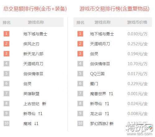 游戏币交易排行榜本周游戏币交易排名: 本周前六没有任何变化,《新寻仙》上涨一位,排位第八,上周新上榜的《魔兽世界》又加紧努力上升一位,位居第七位。