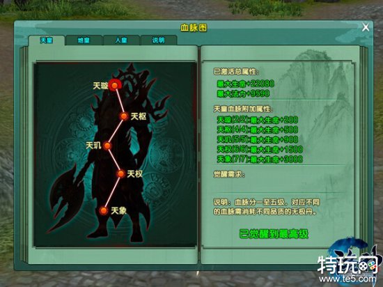 修行者欲达到飞升的境界,还需在实力上全面提升。血脉系统就是其中之一。作为突破到上仙/上魔境界的要求,修行者必须打通天、地、人三皇血脉以成就“长生”。血脉系统带来的收益绝非仅仅是达到飞升要求而已,其分别对最大生命、暴击和抗暴击的提升是最简单又粗暴的。