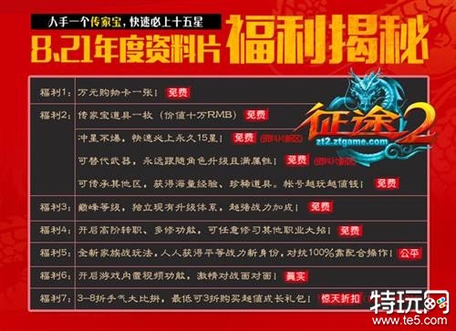 游戏才刚启动,奖励早已备足!为了庆祝《征途2》全新资料片“传家宝”开测,为让玩家能够“无后顾之忧”的畅爽体验游戏,本次所开放的新区玩家上线即可免费获得价值万元的购物卡。购物卡可购买高星装备、装备打造道具、大量银卡军票等,为新区征战的玩家提前备足弹药,快速踏上激情的战斗之旅。