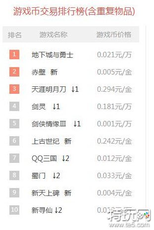 游戏币交易排名:本周《地下城与勇士》的第一位依旧没有人能撼动,但同时第二位则不行新晋一位新游戏《赤壁》,相对的《剑灵》《剑侠情缘Ⅲ》《QQ三国》等都均有下滑。
