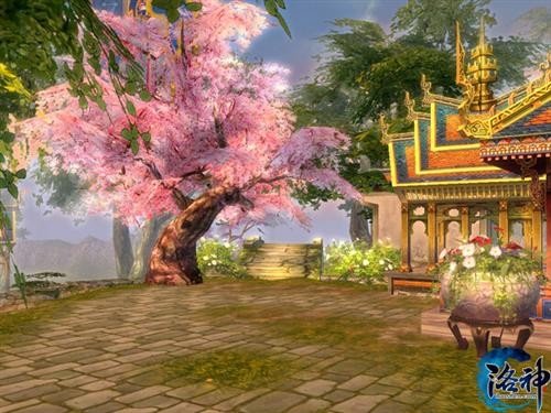 从轩辕皇城初入落霞岭,一片红色的树海扑面而来,不知是何时期的青铜巨剑斜置于此,仿佛融入了自然般,为此景带来了时代的气息。从古枫林穿出,一幅不一样的画卷映入眼帘。落霞古镇,坐落于绿树红花之中的人家,浓郁的西域风格色彩和建筑,令玩家仿佛走入世外桃源。