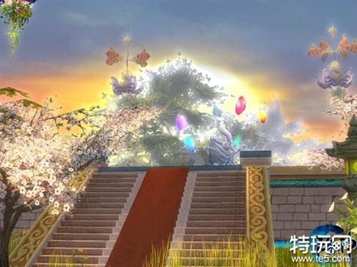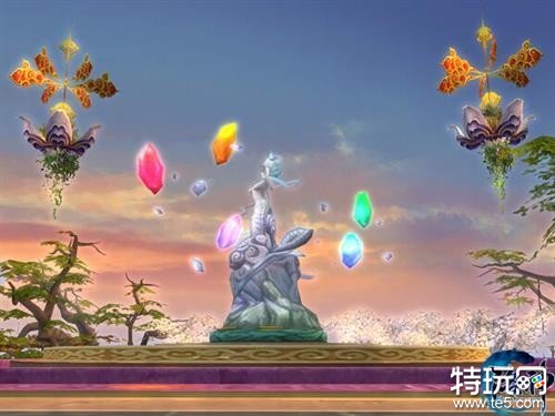 从落霞古镇遥看,远处一座五色斑斓的古迹栩栩如生。听风台上,女娲补天神像,环绕着五色补天神石,在夕阳下诉说着洪荒的过往。有情人士也可前往至此,在女娲的见证下,立下山盟海誓,结成恩爱道侣,相伴修真路。