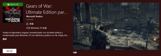 《战争机器:终极版》已经登陆中国Windows10应用商店,售价87元。