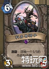 科多兽骑手 635 激励召唤35 解不掉爆炸系列,即使8费双35也算是不亏,还加送一个英雄技能。可以说是一个非常实用的紫卡,赚卡差效果非常明显。但是这张卡的缺点也同样明显,那就是慢。虽然是一张6费卡牌,但是几乎必然只能在8费时候使用。能否跟上竞技场的节奏还需要实战的检验。