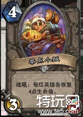 低阶侍从,121身材,激励:获得+1攻击力 这张卡刚出的时候我也同样认为这是一张没法拿的逗B 卡,但是仔细想来却未必这样。试想,如果我们1费上一个这个随从,在下回合面对对方两费随从时,使用英雄技能加这个随从与对方换掉,比起1费空过,两费时 候再上两费随从的情况,可以说是只有好处,而没有任何坏处的。其实在很早以前,当时竞技场中两费生物大多都是232的身材,便有这样一种声音,我们可以在 使用一些英雄技能能够补刀的职业,在竞技场的卡组中加入一些一费的随从,并且是选择112身材的随从,而不是我们现在更青睐的121随从。主要原因就是他 们不会像121随从那样被英雄技能补刀而导致亏卡,并且如果在1费能下场的话,对场面也是很有帮助的。但是同样也面临着两个问题,一是我们很畏惧对面使用 223随从来应对,二是如果开局摸不到,这一张卡虽然不会被直接补刀,在后期也无法带给我们什么帮助。所以这样的一种选牌思路很快就被人们所遗忘。但是当 这张卡出现的时候,以上所说的两个问题都不再是问题。可以说在面对现在更加主流的223随从时候,这张卡前期的压制力与121随从是相当的,并且在后期, 这张卡可以说是中立1费随从中最有用处的。所以,如果我们的卡组不是一个攻击性很强的卡组的话,这张一费随从可以说是在中立里面仅此于肉僵的一张牌,当我 们两费随从无法补足的时候,我们可以选取他来完成前期的过度。对于能够补刀的职业来说,这张卡牌的优先度等于甚至略高于一个标准身材的白板2费随从,而对 于没有补刀能力的职业来说,由于没法处理对面2费极大可能上场的223随从,这张卡选取的意义不会太大。