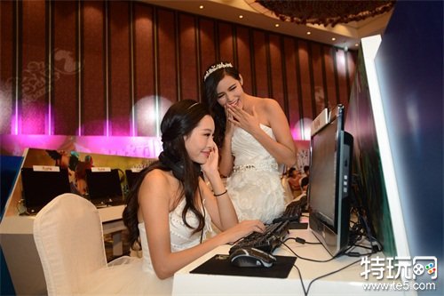 这几天的天气可谓是秋高气爽!但广州长隆酒店的现场气氛却依旧火爆!是因为《梦幻西游2》全民PK赛总决赛在这里举行,更是因为有一对漂亮的新娘子在这里火辣上演结婚大作战!两名穿着雪白婚纱的漂亮新娘高举着“谁是冠军我就嫁给谁”的粉色牌子,在现场为观战的玩家们签到,这样火辣的气氛,冠军你扛得住吗?
