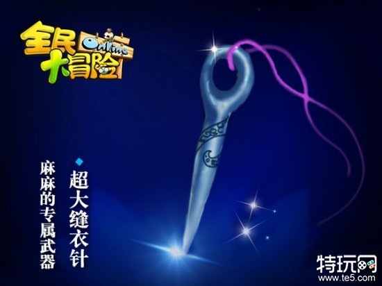 “针”,从来就不只是用来缝衣服的,无论是东方不败手里的绣花针,还是蜀中唐门的“暴雨梨花针”都是,都能让敌人两股战战,闻风逃窜!而即将上线的《全民大冒险OL》里的超大缝衣针更是将实用性和攻击性集于一身,庞大锋利的针尖让敌人望之生寒!不过,强烈建议有尖端恐惧症的玩家慎选!
