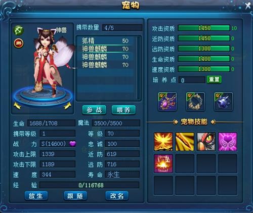 是不是厌倦了宠物固定的那些技能?是不是觉得技能不够用?,在《画江山》里,吊坠事可以给宠物附加额外的技能的,比如一级装备可附带一个低级技能,二级装备可以拥有两个技能并且有可能是高级技能,更高高等级的吊坠甚至可以附加两个高级的技能,试想在原有的5技能的基础上再加上2个高级技能,如果本身的技能就是高级技能的话,那就能拥有一个7技能的高分神宠了!