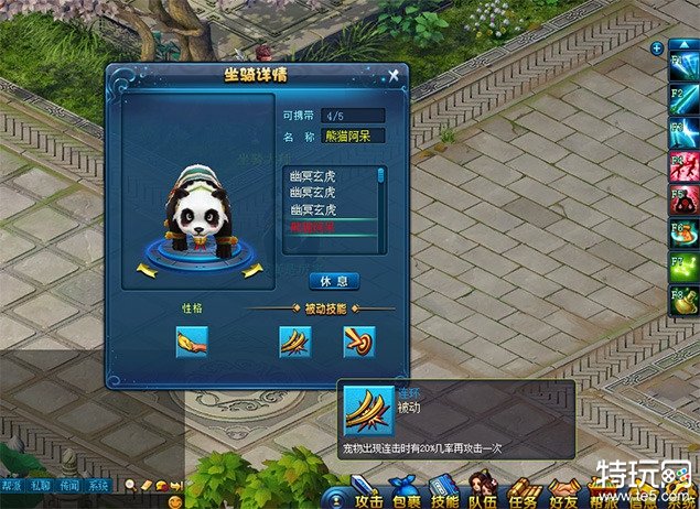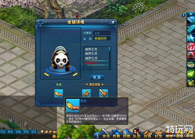坐骑要个性,只有性格怎么够?当然还要有独一无二的技能啦。坐骑的性格对宠物战力的影响非常大,技能也不例外,目前一共开放了十种不同的坐骑技能,比如连环,宠物出现连击时有20%几率再攻击一次,简直就是物理系宠物必备!比如反制技能,当宠物被攻击时,反击概率增加5%;如果触发了反击,则40%再对目标追加一次攻击,这不是血宠的利器么?有了这些技能,作战的时候是不是更加轻松了呢?