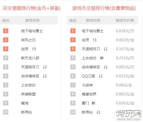 游戏交易排行榜:LOL及魔兽稳居第8