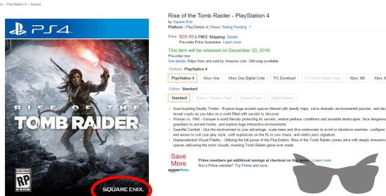 另外,亚马逊页面PS4版封面也不包括水晶动力图标,显示图标为Square Enix,其中雪崩工作室即为Square Enix欧美部所属。