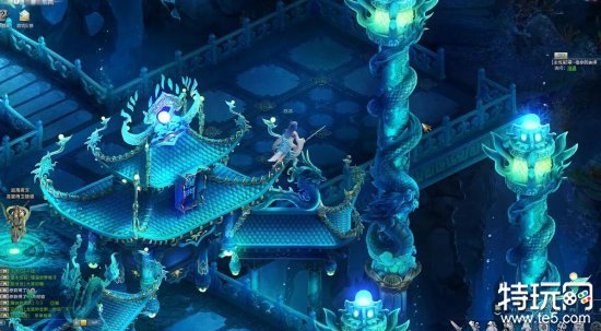 游戏每个门派在初期都有不同的诞生地,视频演示中龙宫采海底蓝背景色调既贴合了主题又不显虚假,尤其在主体建筑以及背景物品上可以很直观的看到其精美程度,只能说习惯粗糙之后猛的瞅见这样精细的游戏还真有些不适应。