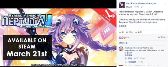 《超次元ACT:海王星U》由Tamsoft开发,是一款无双类的《海王星》系列外传游戏。这款PSV游戏去年曾经曝出消息称游戏将推出PC版但未确定时间。近日,游戏官方脸书发文表示游戏将于3月12日登陆Steam平台。
