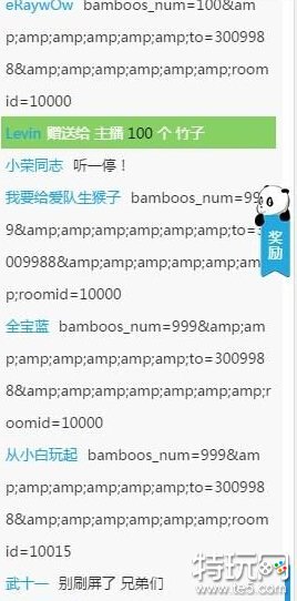 另外,王思聪表示目前平台还有大量BUG,所以现在发放的激活码比较少,在未来BUG逐步解决后,会向那些申请激活码的邮箱大量发放,直至正式上线。下图为玩家发现的一个BUG,似乎是只要在弹幕中输入这串代码,便可以获得一定数量的竹子,不过该BUG应该已经被修复。