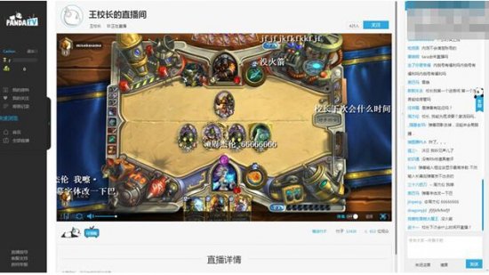 从界面以及UI来看,熊猫TV与目前其他几家直播平台大同小异,并没有比较特殊的地方,甚至一眼觉得这和斗鱼的界面都非常类似。下图为王思聪直播打炉石中,校长的房间ID为10000。