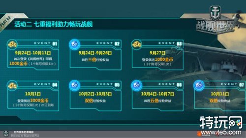 为迎接国庆假期,《战舰世界》远航测试,所有参与测试玩家首次登陆即可获赠1000金币奖励,10月1日国庆当天登陆即送3000金币奖励。同时9月24日开启~10月11日还将每天开放多倍收益助力玩家快速解锁科技树。