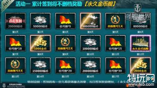 参加远航测试的玩家,即可在9月24日开始每日通过活动界面,签到领取大量新兵奖励,签到12天还将赠送永久金币船奖励,金币船将在不删档是发放到玩家账户。