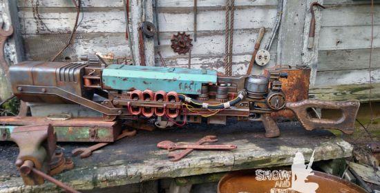 近日有国外核心《辐射4》粉丝就制作了这么一把现实版“THE LAST MINUTE”,主要材料是木头和塑料,别看略显单薄,但是上好色之后简直就是神还原了游戏中的样子,另外,他们还打造了一个游戏中工坊,这把传奇步枪配上杂乱的工坊,更显的有味道。