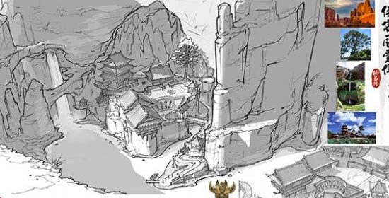 玄剑山庄的设定线稿