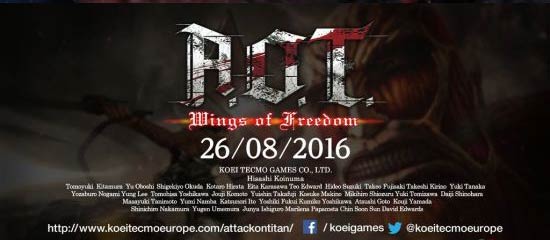 今(7)日,官方正式公布了《进击的巨人:自由之翼》欧美版最新预告片,该作将于2016年8月26日正式于欧美地区开始发售,登陆平台为PC、PS4、PS3、PSV以及Xbox One,并将上架Steam。