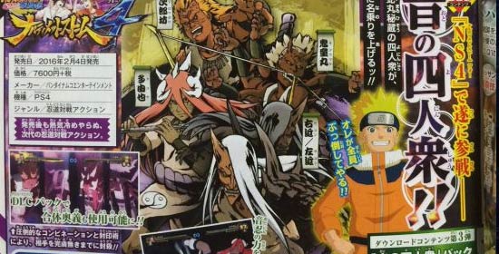 《火影忍者疾风传:究极忍者风暴4》的第三弹DLC内容通过杂志曝光,音忍四人众鬼童丸、多由也、左近右近、次郎坊现身扫图之上。