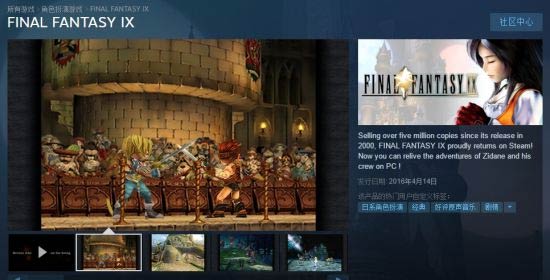 虽然《最终幻想15》是否会登陆PC平台尚不可得知,但今日(4月14日)《最终幻想9》已经登陆PC平台,在Steam正式发售了!