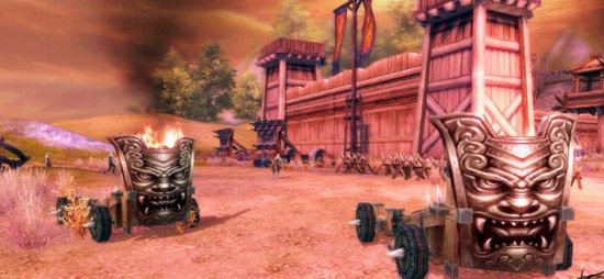 军团领土战是最能体现军团实力与荣耀的途径之一,游戏共开放了28块领土提供各个军团进行争夺。争夺战开始后,攻方可以变身箭塔将守城士兵进行清场,并操控火雷轰炸城门,同时可安排奇袭小队利用6个密道进入城内偷袭。而守方可通过操控载具“投石车”以及控制“弩塔”进行反击,并同时安排重兵看守密道。每个军团每周只要占领了一块领土,便会产生一定的领土收益,领土占领越多,收益越大,1个军团同时可以占据多块领土。