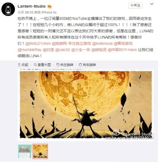 戏剧性的是,《月影之塔》在昨天之前实际还未达到众筹目标,然而当一位在Youtube人气十分火爆的游戏主播在播出这款游戏后,短短几个小时内众筹便超过了100%。