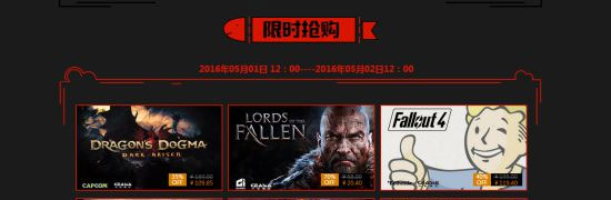 在杉果游戏推出的五一促销活动中,原价199元的《辐射4》本体六折优惠,售价119.4元;原价68元的《堕落之王》数字豪华版三折优惠,售价20.4元;而育碧旗下的包含《魔法门之英雄无敌4》、《雷曼:传奇》、《光之子》和《鹰击长空》在内的多款游戏都在六折促销。时间有限,感兴趣的朋友们要及早下手了。