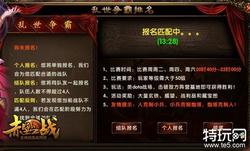 “赤壁战火”玩法报名界面