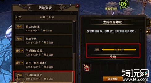 每位玩家每周一共拥有10次挑战次数,每次挑战后根据玩家的表现会给予一定的点数,积分可以在“活动列表”的“去随机副本吧”里面查看,每累计到一定的点数将给予不同的奖励。另外每周会根据总点数情况得出一个排行榜,排行榜对应的名次将给到额外大量的彩虹宝珠作为奖励。