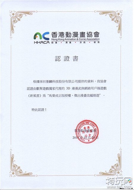 香港动漫协会授予新风云“杰出漫画改编端游”